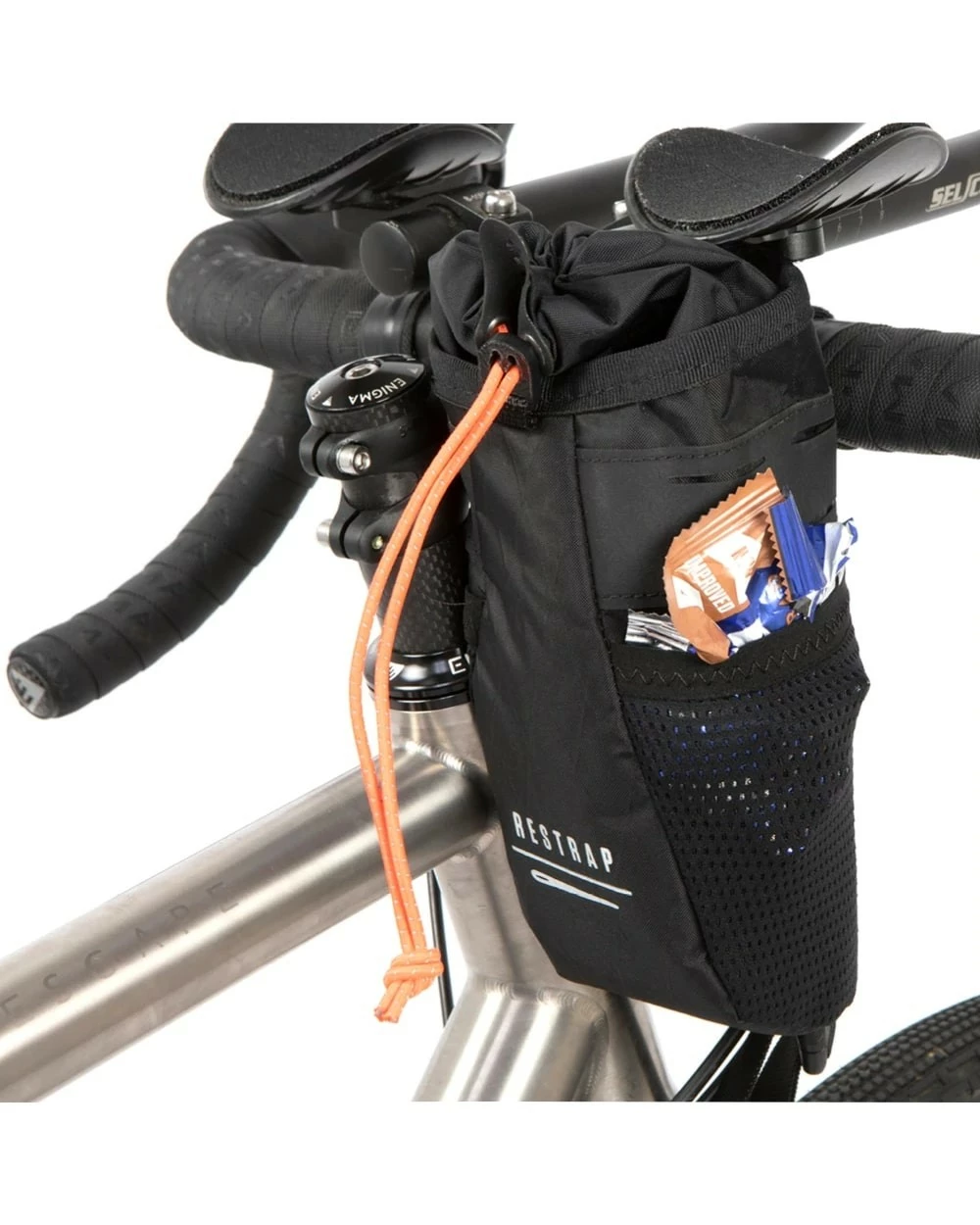 D’une capacitĂ© d’1,1 litre, la RESTRAP Race Stem Bag permet de jeter – puis d’attraper – un sandwich, une petite bouteille ou plein d’autres petites choses (smartphone, portefeuille, barres Ă©nergĂ©tiques…).Â