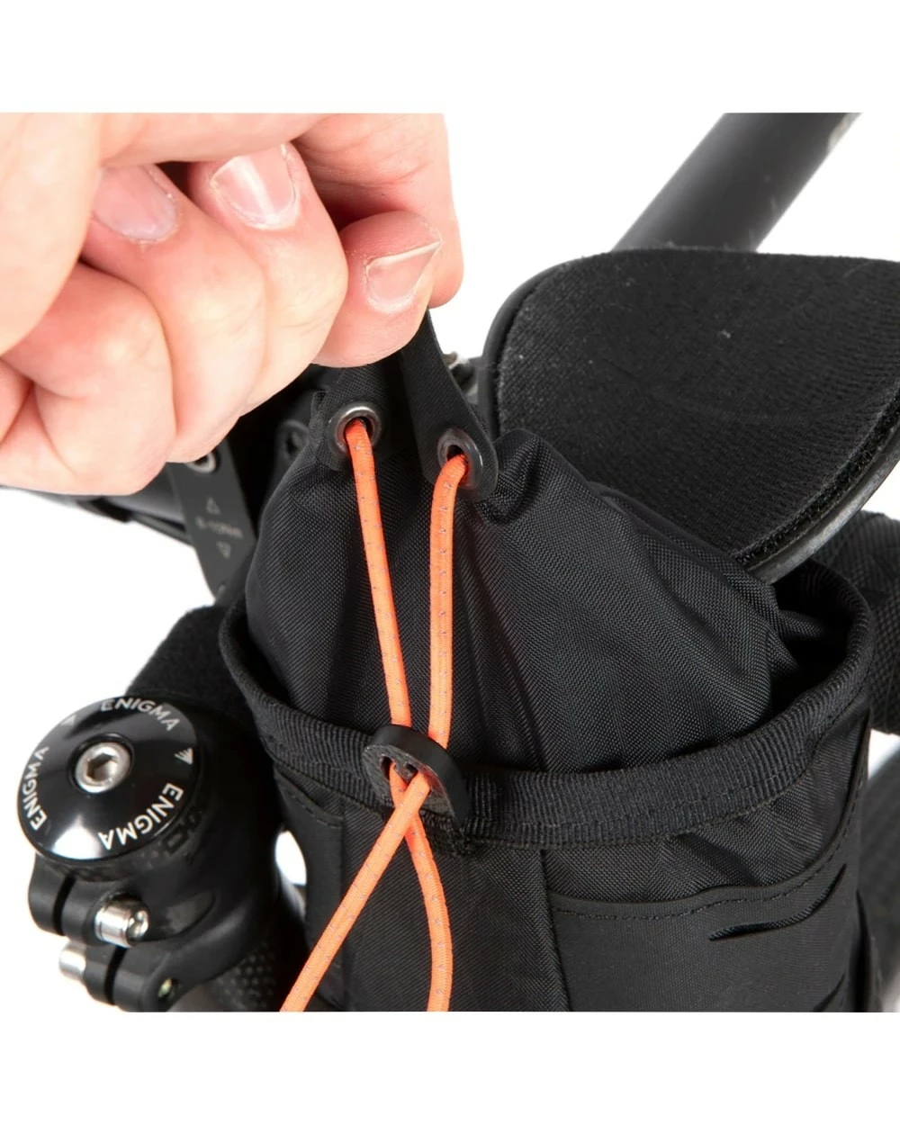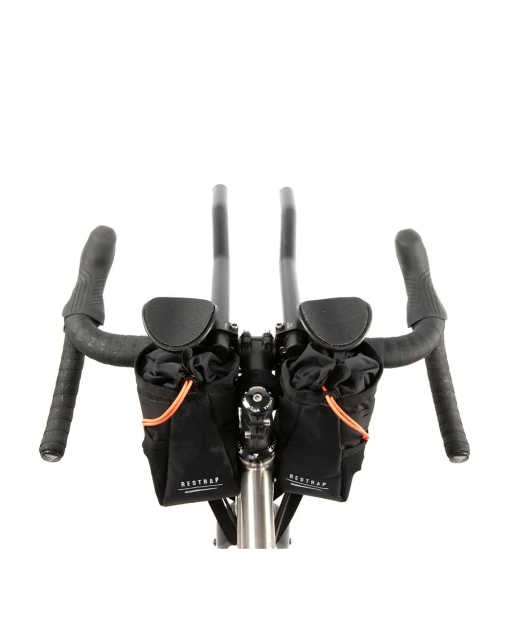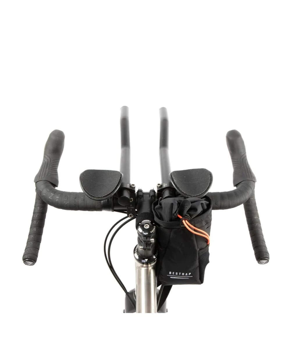 Si la sacoche RESTRAP Race Stem Bag s’utilise en gĂ©nĂ©ral seule, on peut la doubler – comme sur une des suggestions en photos – pour avoir un maximum de rangement Ă portĂ©e de main. Elle complète parfaitement un Ă©quipement de Bikepacking ou d’Ultracycling.