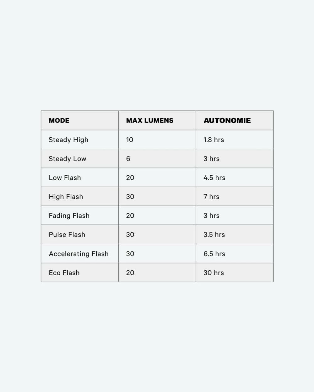 Avec ses 30 lumens de puissance, vous serez visible jusqu’à 300m et plus personne ne vous loupera dans la rue ou sur les routes périphériques.