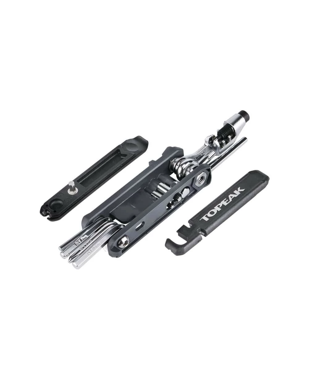 Le multitool Topeak Hexus X est un concentré de l’expertise et du savoir-faire de la marque, un produit robuste, compact et aux très nombreuses fonctions. C’est un outil très complet qui couvre de nombreuses utilisations, de la crevaison au resserrage de vis, au démontage et remontage de chaine.