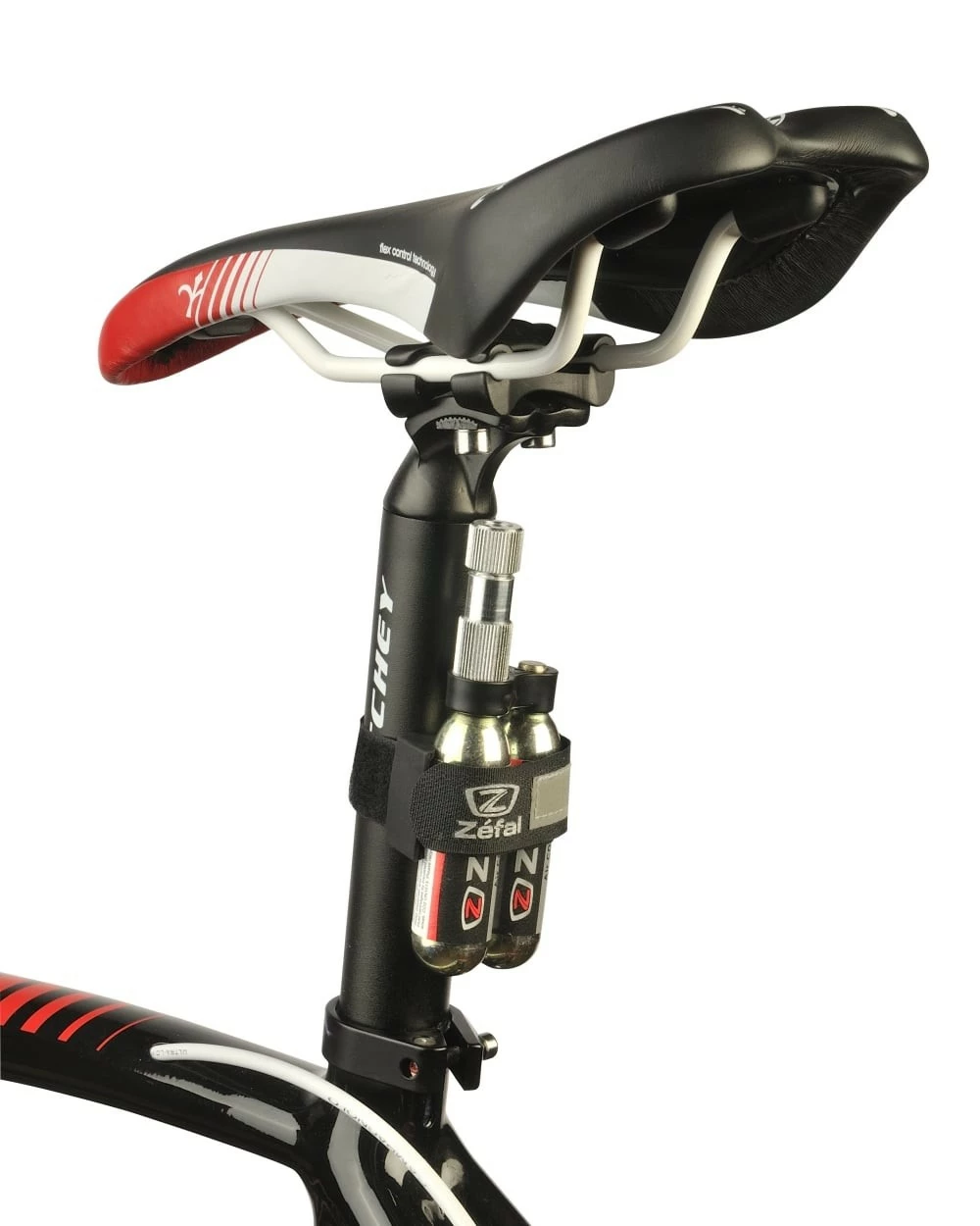 Zéfal nous propose un gonfleur C02 avec son système de fixation intégré à la fois pratique et astucieux.