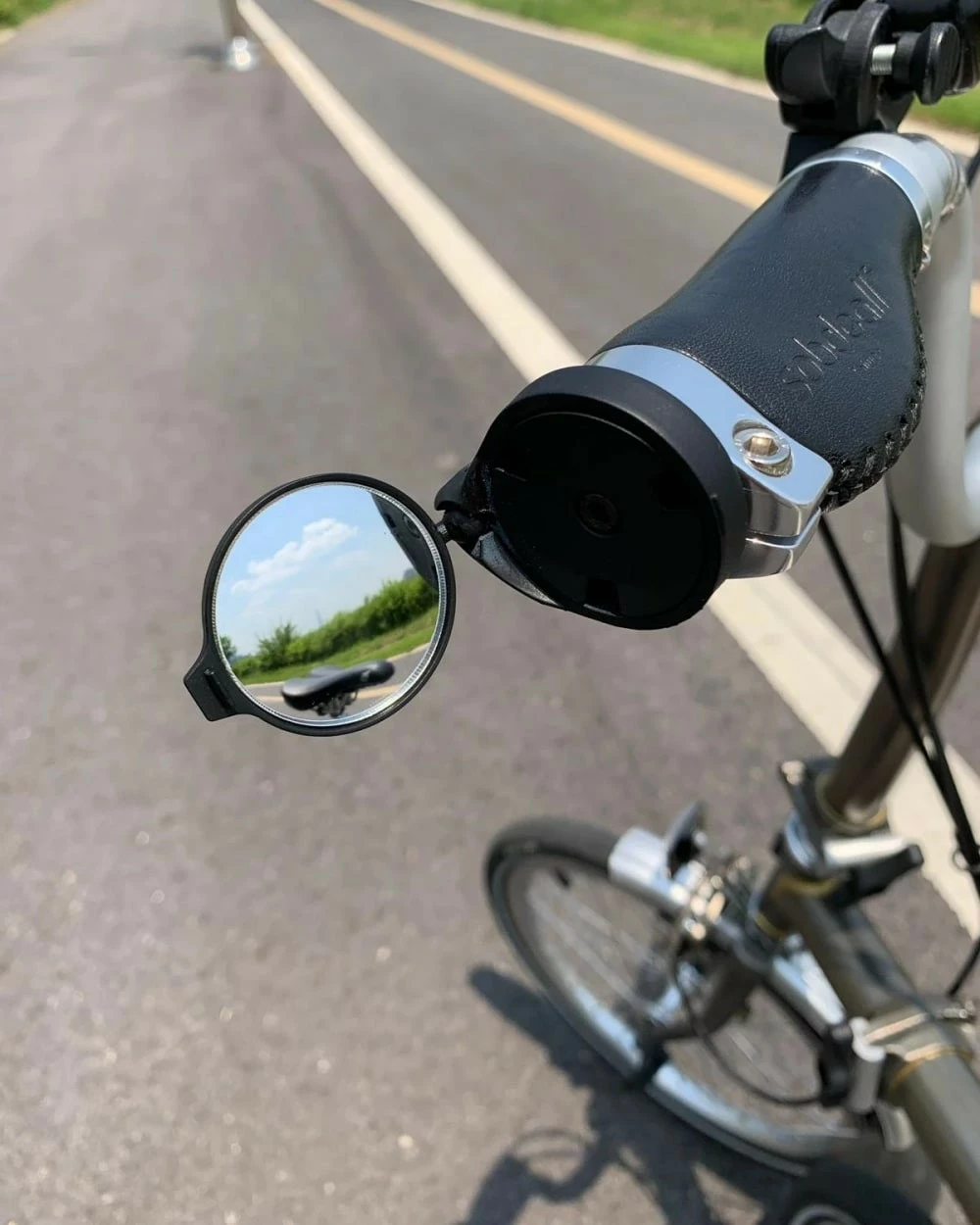 Le rétroviseur vient se « plugger » en bout de guidon au niveau de votre poignée pour vous permettre de voir facilement ce qui se passe derrière vous.