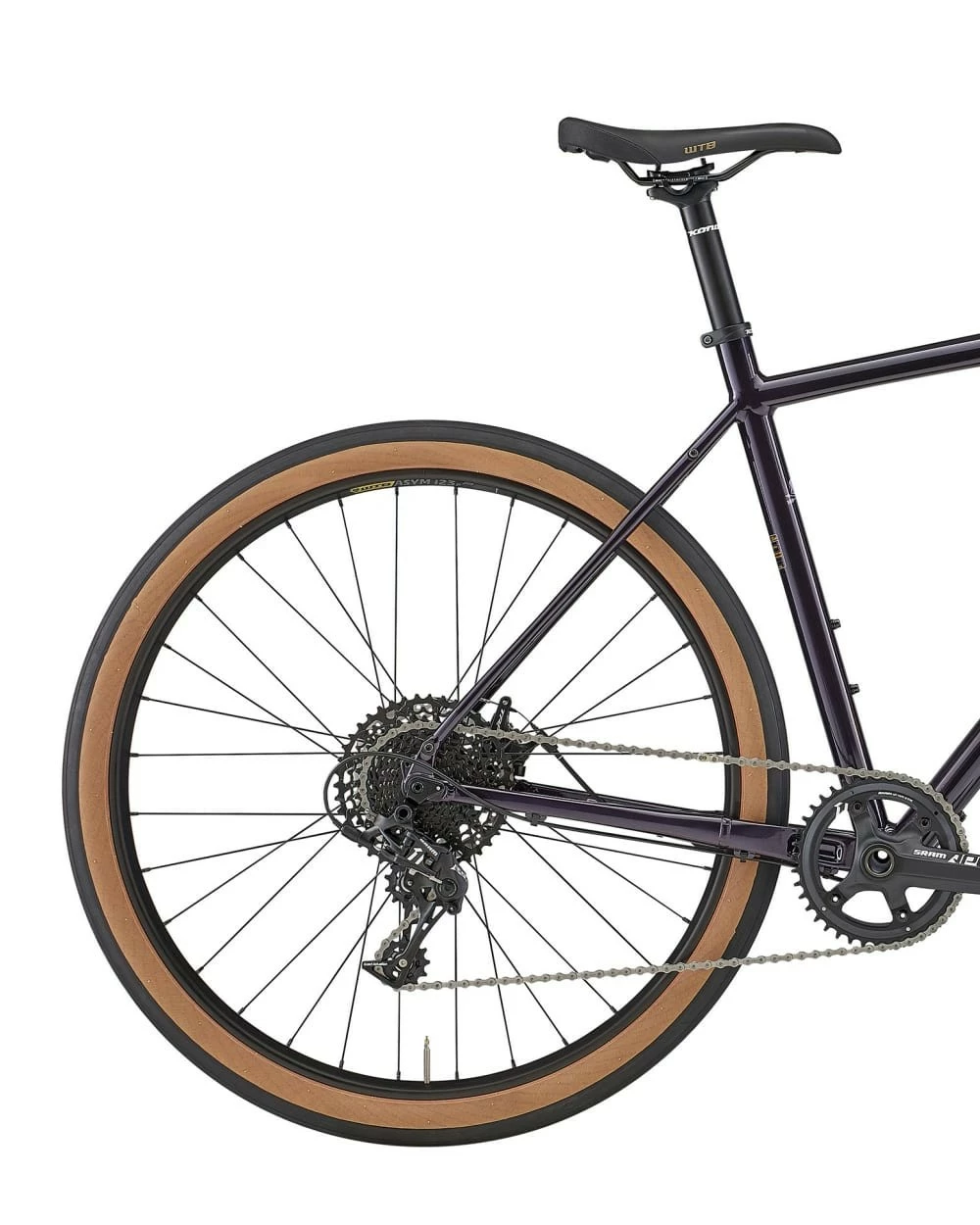 Enfin sa robe violette, subtilement métalisée, lui octroie une élégance rare pour un vélo Gravel. Les amateurs de beaux vélos apprécieront.