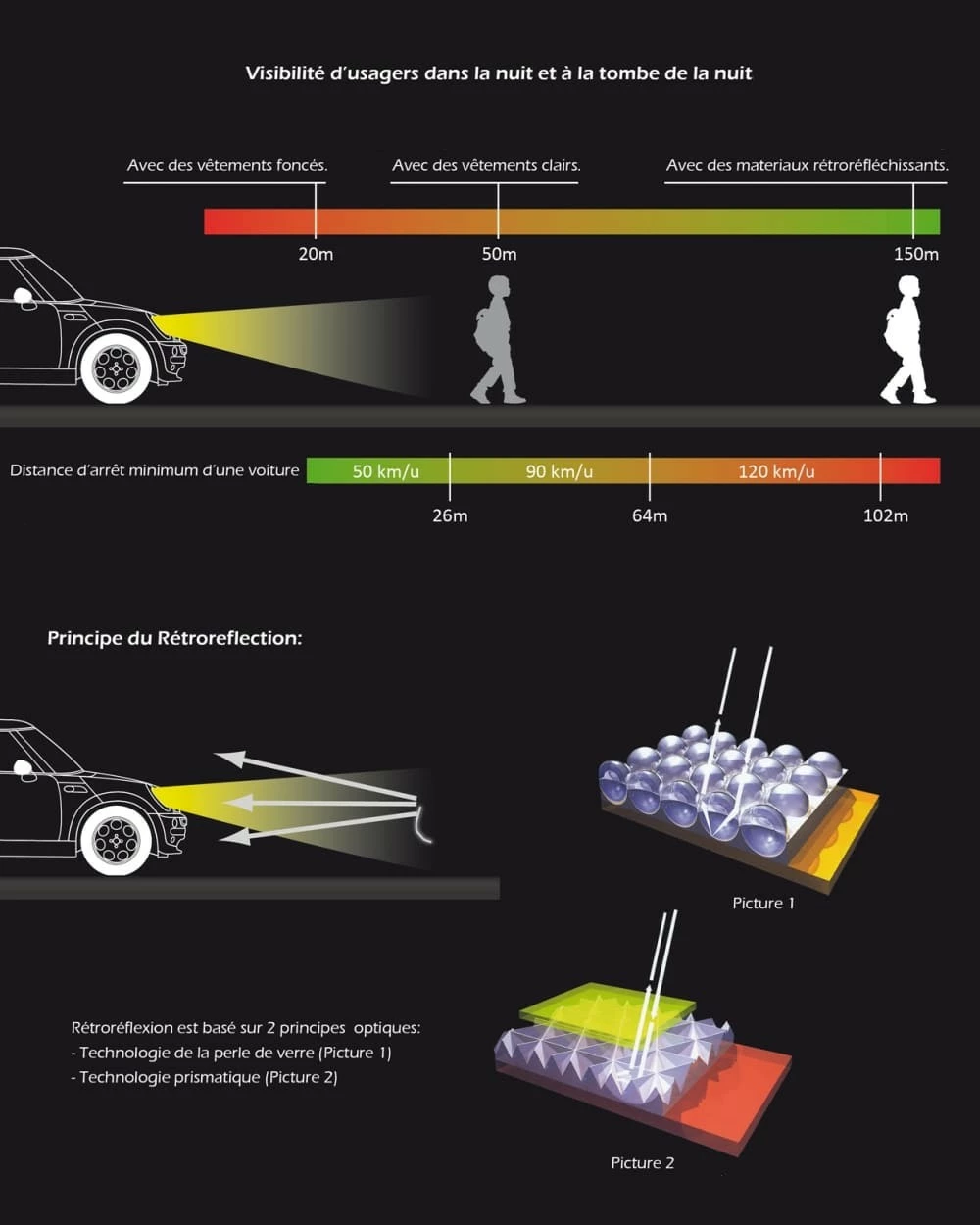 Ainsi, le gilet se pare de 4 larges bandes réfléchissantes qui font le tour du gilet pour une visibilité à 360°.